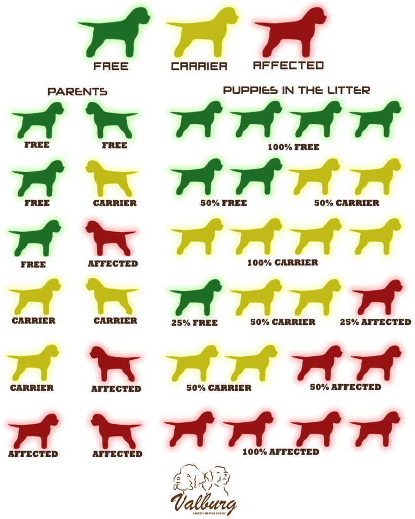2. Carrier: the dog carries the gene in its genes but will not be sick, is perfectly healthy and breedable!